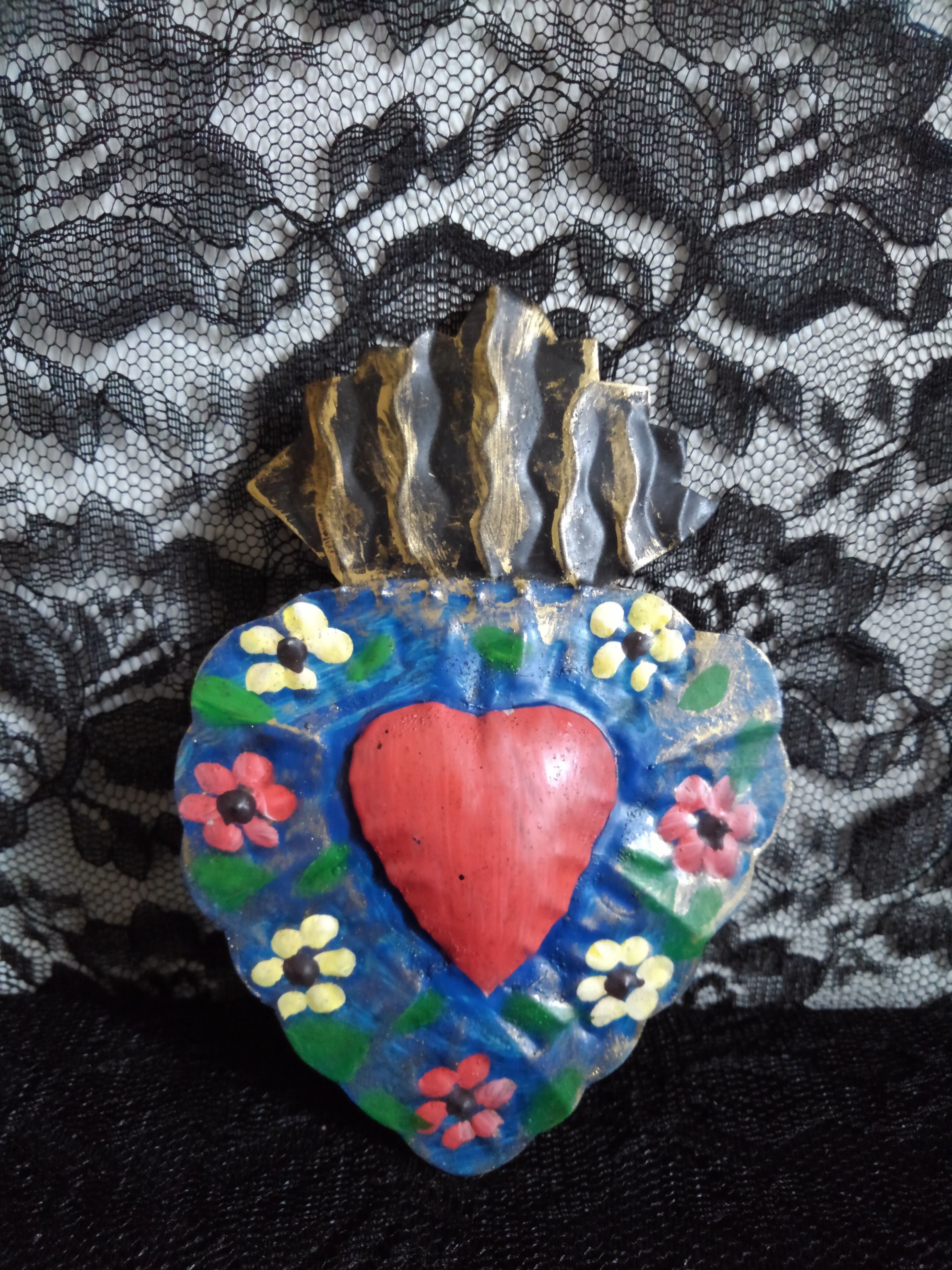 ブリキ壁掛け ミニハート ブルー