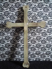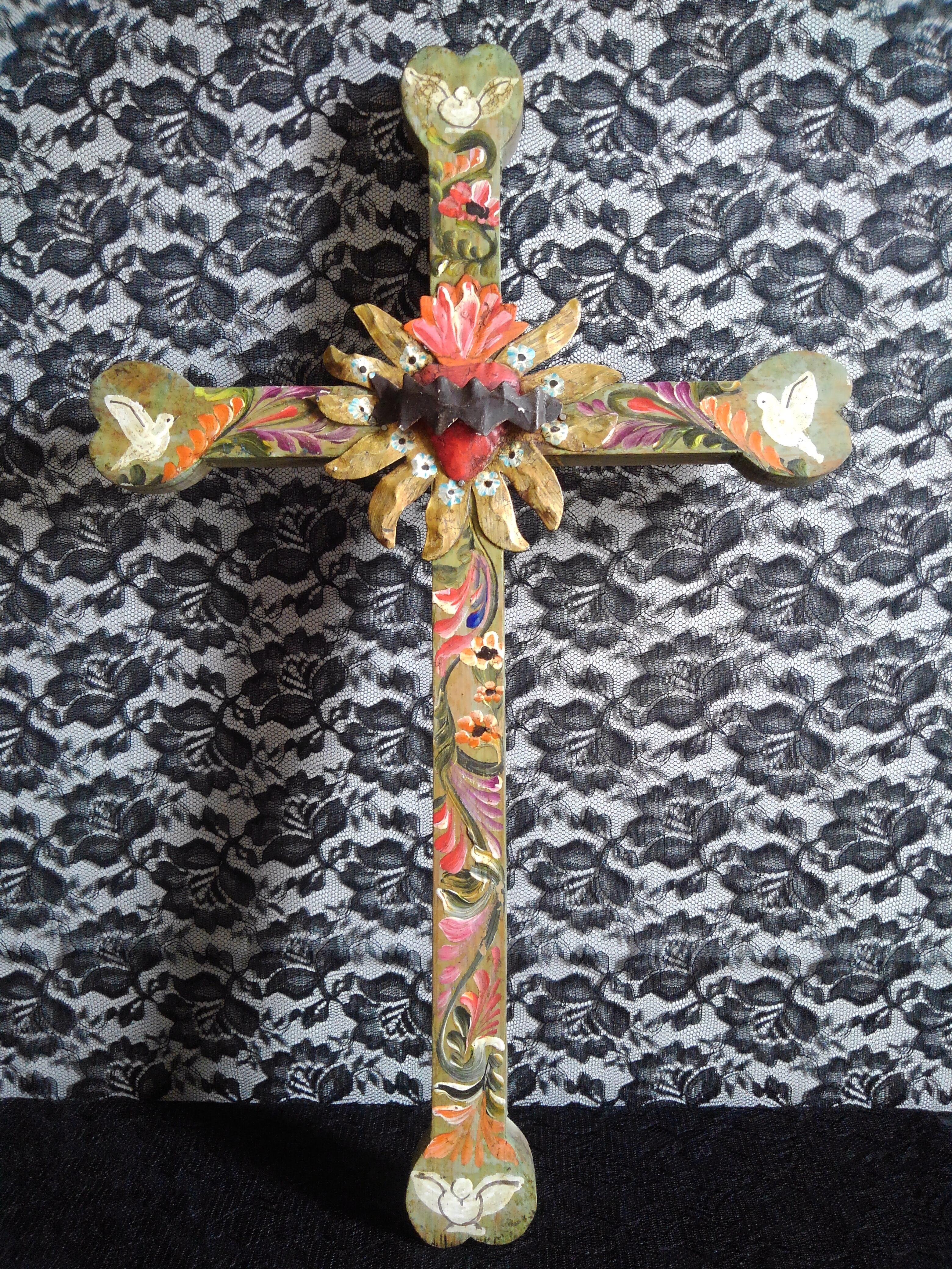 職人によるハンドペイントが美しい木製壁掛けクロスです。中心にはブリキ製のハートが付いています。かなり大きなサイズで存在感があります。
